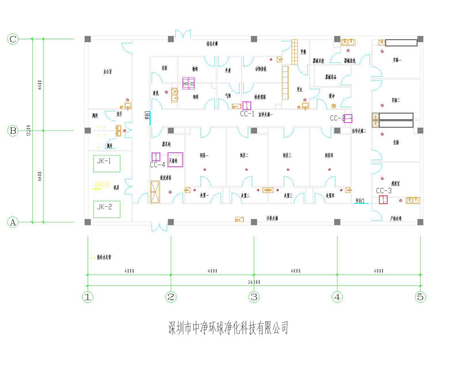 強(qiáng)電系統(tǒng):電氣控制柜、潔凈室專用燈具、動(dòng)物照明、開關(guān)插座、紫外線殺菌燈、電纜電線、配管線槽等設(shè)備、材料。